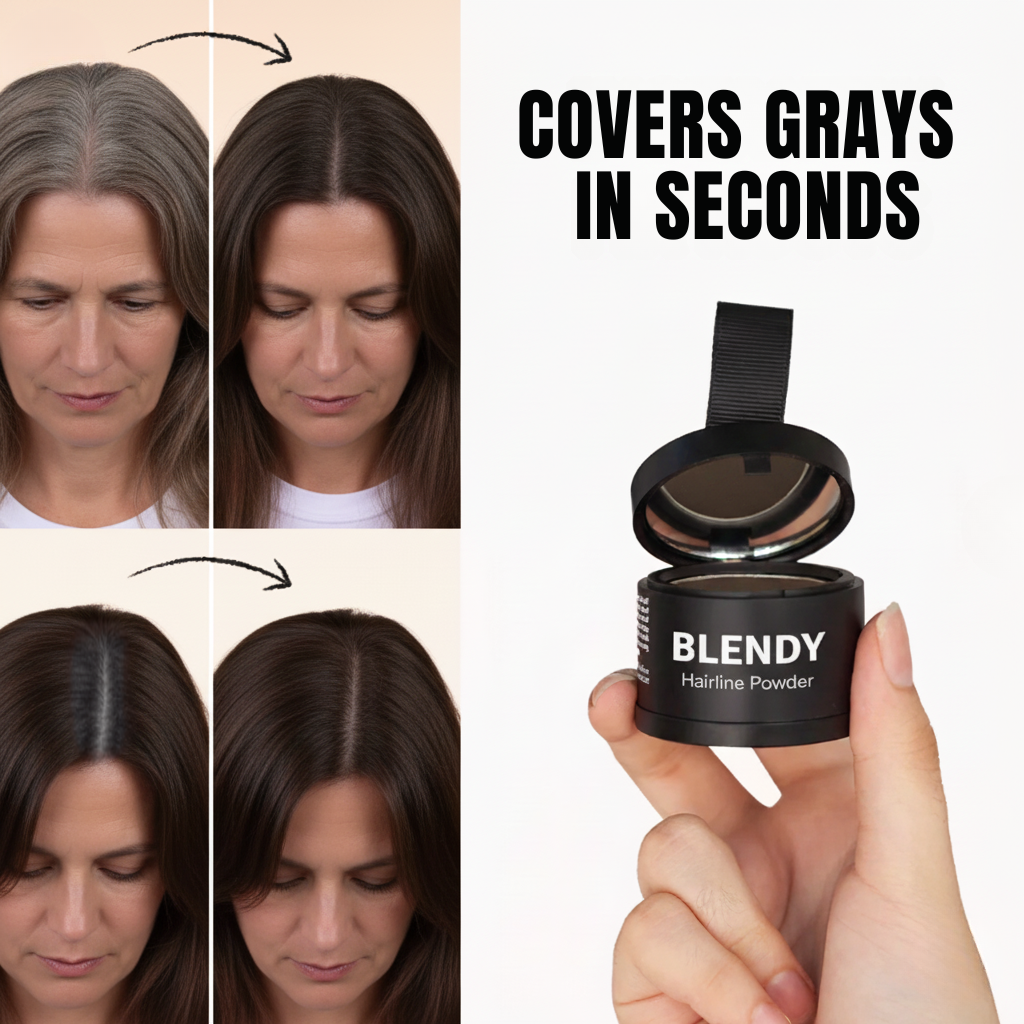 BLENDY Hairline Powder covers gray roots effortlessly, giving a refreshed, youthful look in seconds.